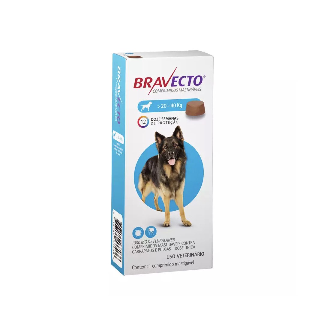 ANTIPULGAS E CARRAPATOS PARA CÃES MSD BRAVECTO 1000MG - 20 A 40KG