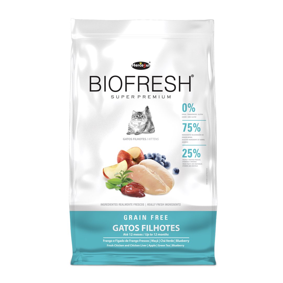 <p>Biofresh Super Premium Gatos Filhotes é inovador e diferente porque possui alta inclusão de carnes frescas com um toque de vegetais e frutas nobres. O resultado é um alimento grain free, completo e equilibrado que se destaca por elevar a nutrição de carnívoros ao seu mais alto nível. A tecnologia Biofresh garante a preservação deste alimento de forma segura e 100% natural, sem adição de conservantes artificiais.</p>