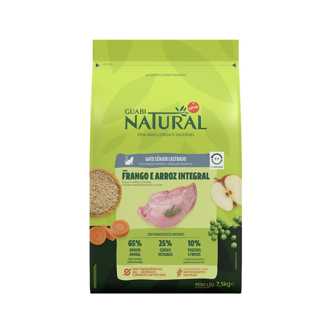 RAÇÃO GUABI NATURAL GATO SÊNIOR CASTRADO FRANGO E ARROZ INTEGRAL
