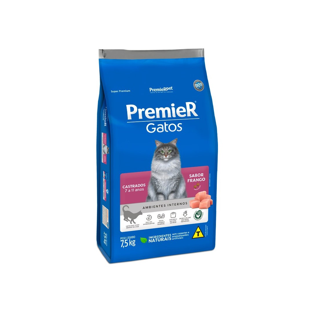 RAÇÃO PREMIER GATOS CASTRADOS 7 A 11 ANOS Tamanho:7,5KG