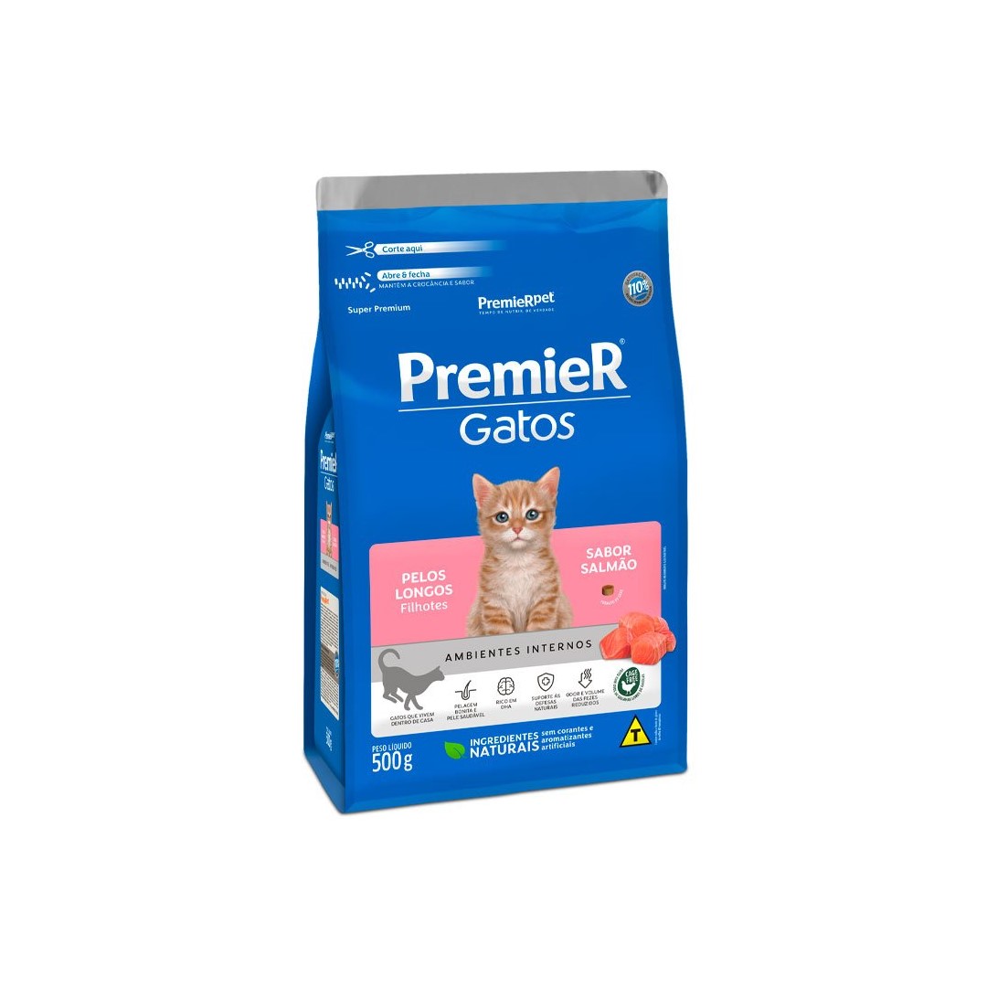 RAÇÃO PREMIER GATOS FILHOTES PELOS LONGOS SALMÃO